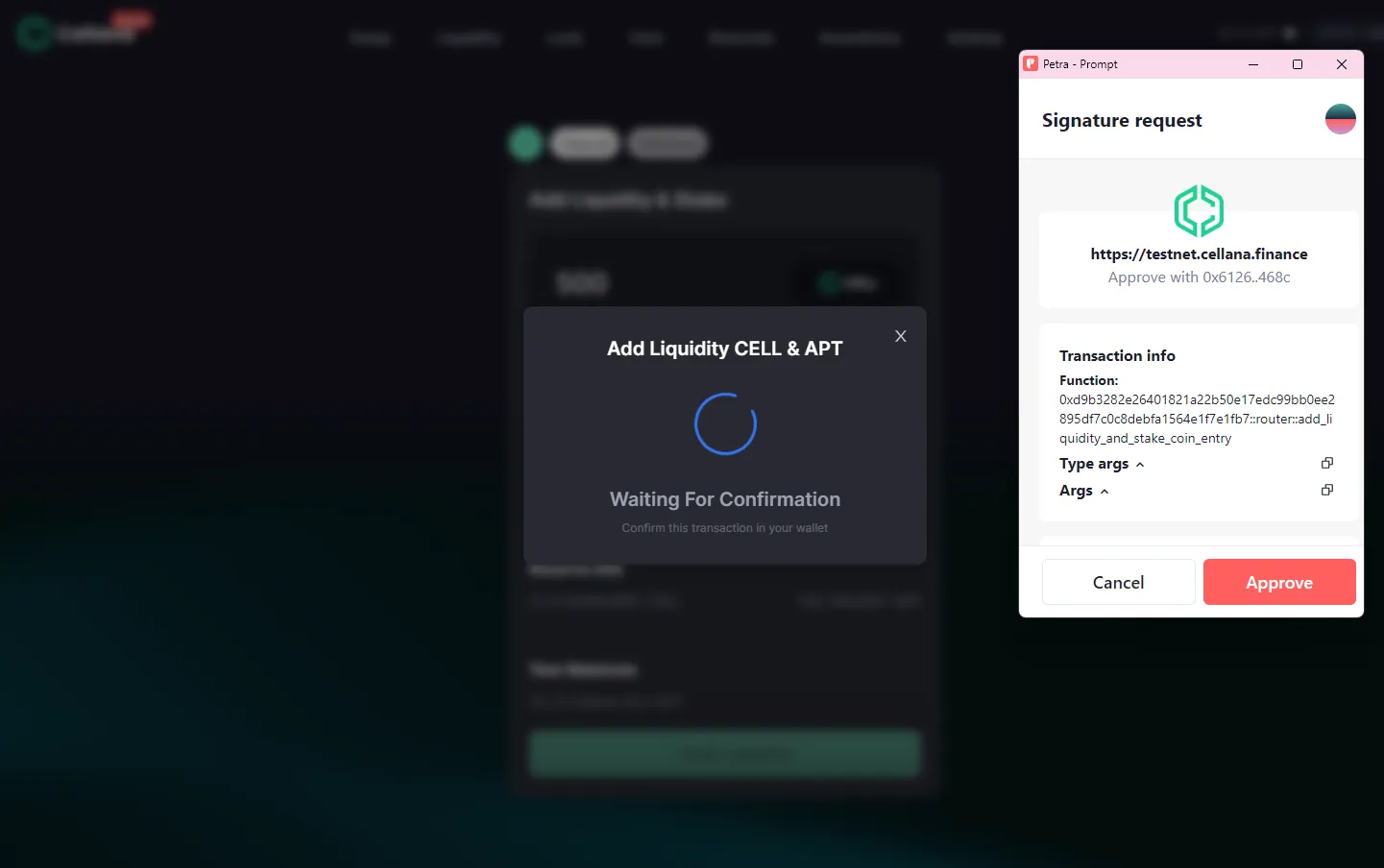 **Step 3**: Fill the amount of CELL and APT to add liquidity.