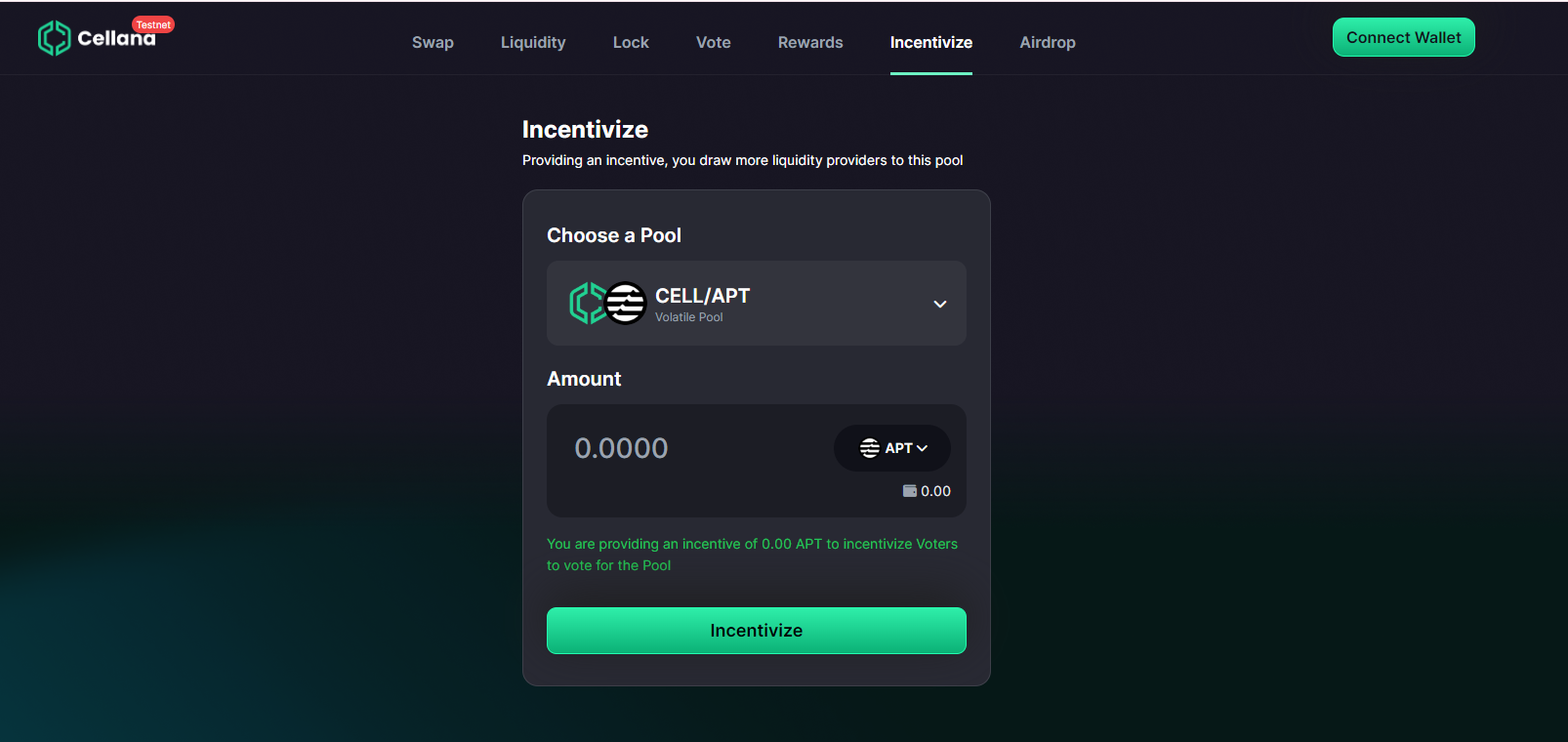 Projects or users have the freedom to add incentives to selected liquidity pools to incentivize veCELL voters to vote on the selected LPs. These incentives can consist of any tokens supported on the platform.